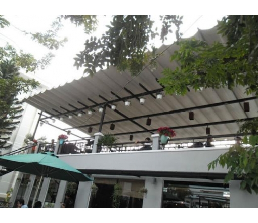 Chuyên thiết kế thi công mái xếp nhà hàng, mái xếp quán cafe, mái xếp sân vườn, bạt xếp, bạt kéo, mái xếp lượn sóng, mái che, ... Liên hệ hotline : 0933108738