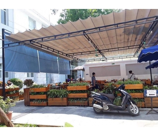 Chuyên thiết kế thi công mái xếp nhà hàng, mái xếp quán cafe, mái xếp sân vườn, bạt xếp, bạt kéo, mái xếp lượn sóng, mái che, ... Liên hệ hotline : 0933108738