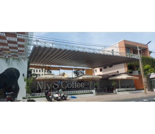Chuyên thiết kế thi công mái xếp nhà hàng, mái xếp quán cafe, mái xếp sân vườn, bạt xếp, bạt kéo, mái xếp lượn sóng, mái che, ... Liên hệ hotline : 0933108738